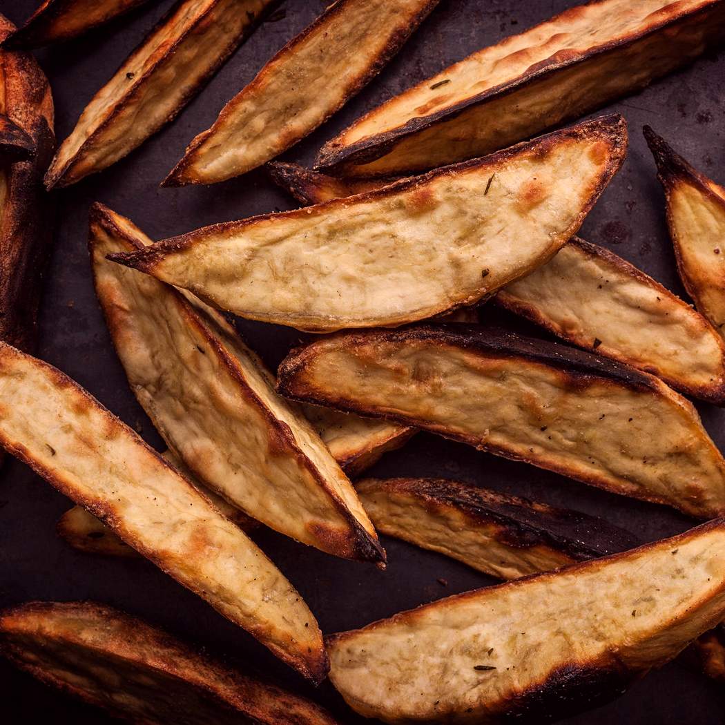 A simple, fast, and healthy treatment for sweet potatoes, adapted from a recipe on the website Health. Experiment with different sweet potato varieties—just make sure to choose small, evenly sized ones so you end up with manageable wedges.