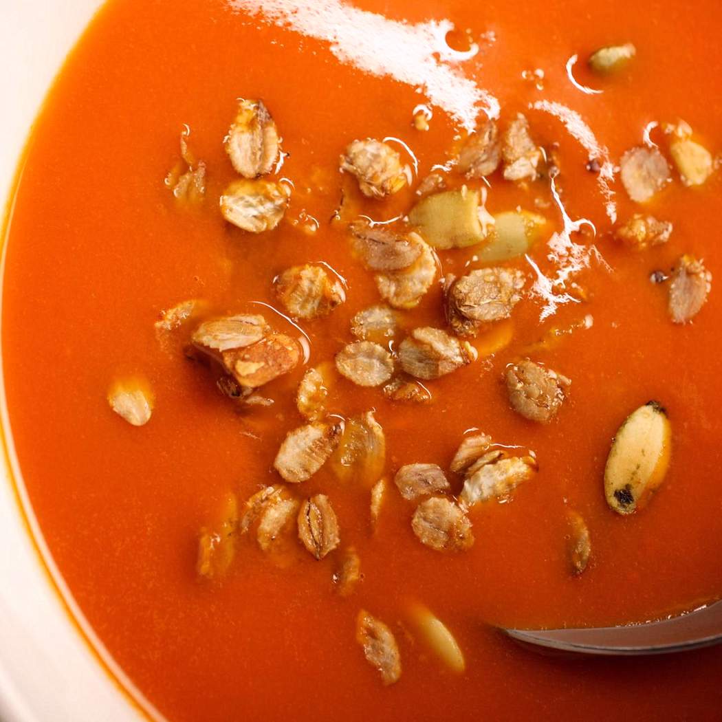 Buttery croutons are crunchy and delicious in soup or on salad, but after seeing savory granola on menus around the country, we thought it’d make an interesting garnish alternative. Our flavor-packed topper is made with rolled rye flakes, crunchy pumpkin seeds (a.k.a. pepitas), and Parmesan cheese. Add a sprinkle to a bowl of Creamy Tomato Soup or a crisp Fennel, Parsley, and Celery Salad for an unexpected twist.